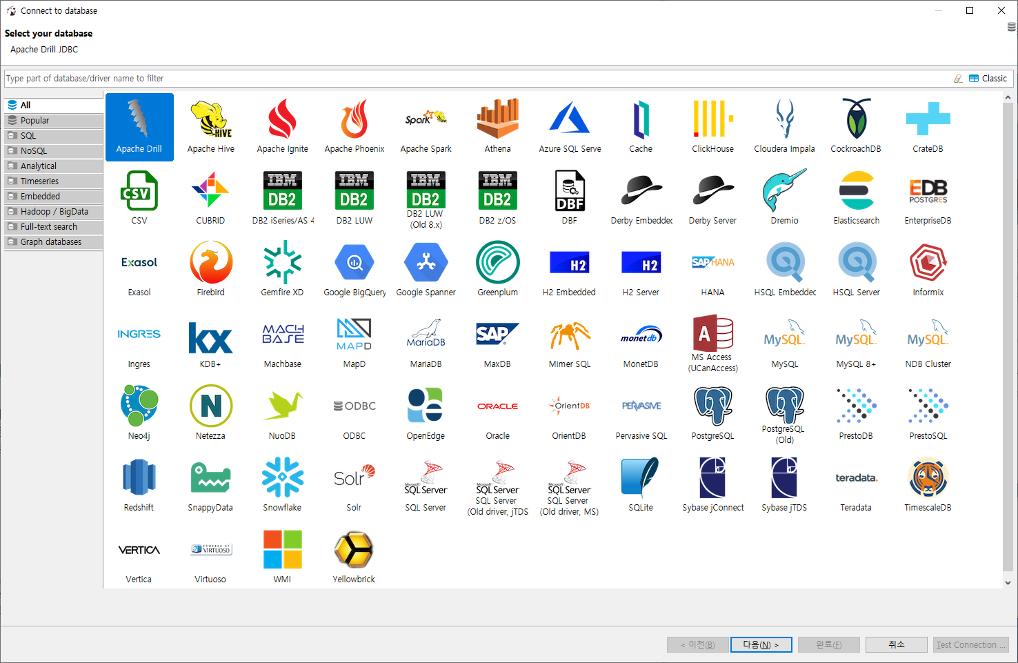 드라이버를 설치하고 Test Connection을 클릭하여 연결을 확인한다.